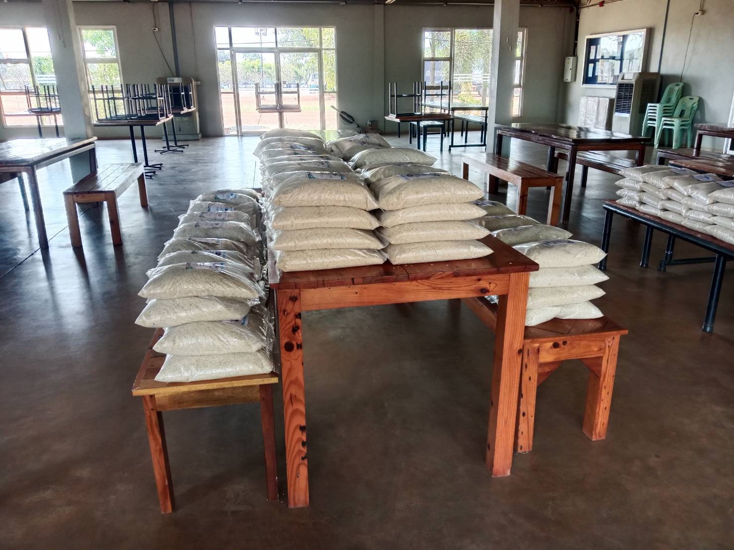 เนื่องด้วย บริษัท อัพเวนเจอร์ จำกัด มีพื้นที่สีขียวที่เป็นแปลงนาข้าว ในช่วงตั้นปีของทุกปี หลังเก็บเกี่ยวข้าวนาปีเสร็จ บริษัท อัพเวนเจอร์ จำกัด จะเก็บรวบรวมข้อมูลข้าวเปลือกประจำปี เพื่อทำสต็อกข้าว หลังจากนั้นก็นำข้าวเปลือกจำนวนหนึ่ง มาดำเนินกิจกรรม มอบข้าวเปลือก เพื่ออาหารกลางวัน แก่โรงเรียนพื้นที่รอบบริษัท ในพื้นที่หลัก 3 ตำบล ประกอบด้วย ตำบลตะแบกบาน ตำบลเฉลียง ตำบลโคกกระชาย นอกจากนี้ ยังกระจายไปยังโรงเรียนในตำบลข้างเคียงอีกหลายโรงเรียน อาทิ โรงเรียนใน ตำบลมาบตะโกเอน ตำบลสระว่านพระยา เป็นต้น